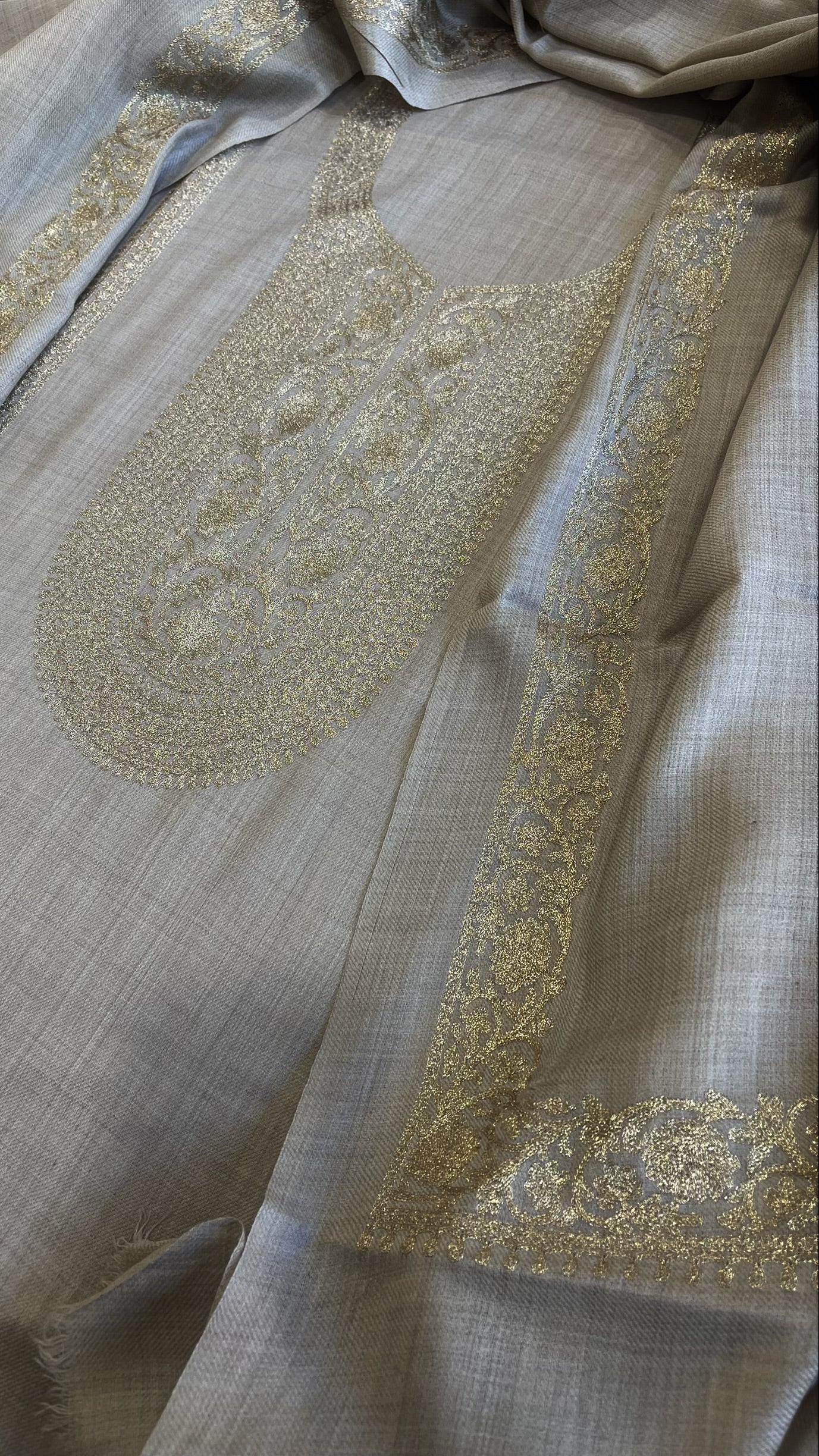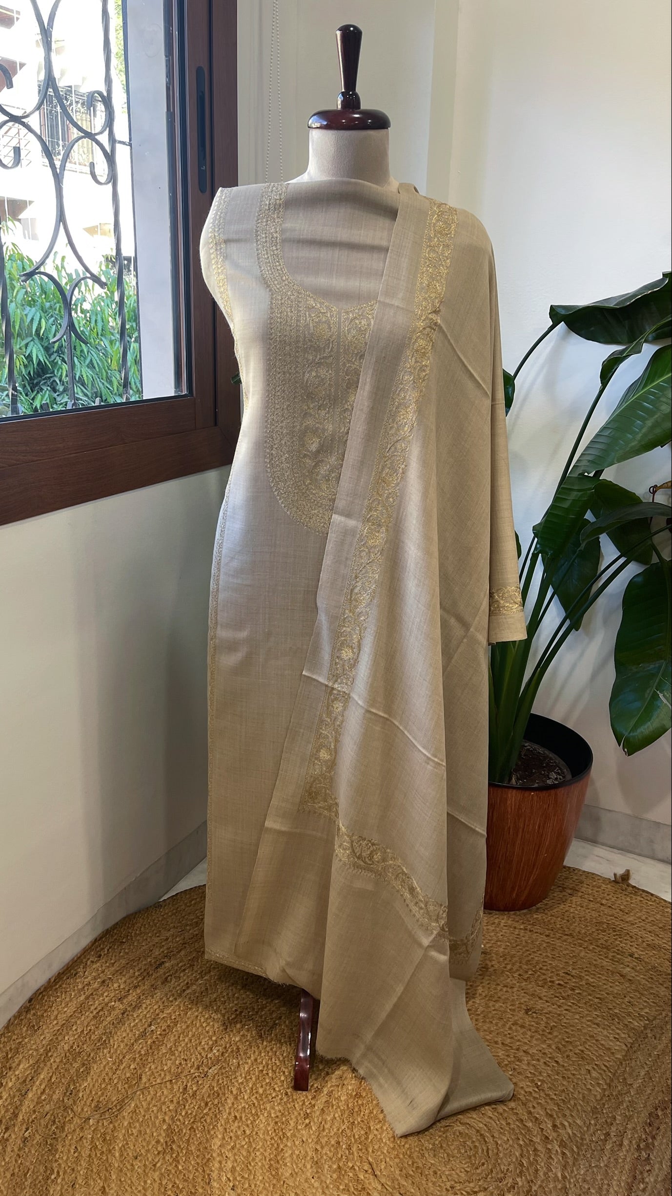 Lite Toosh Winter Suit Set with Aari Work in Pashmina Wool