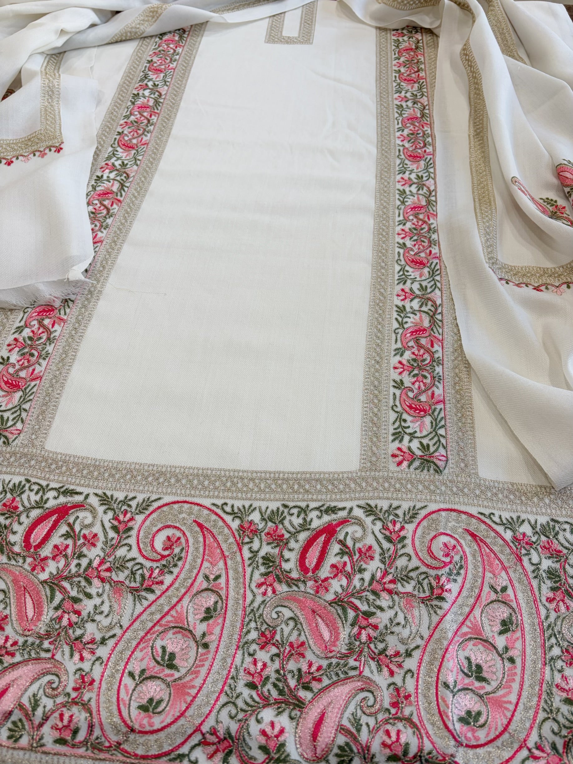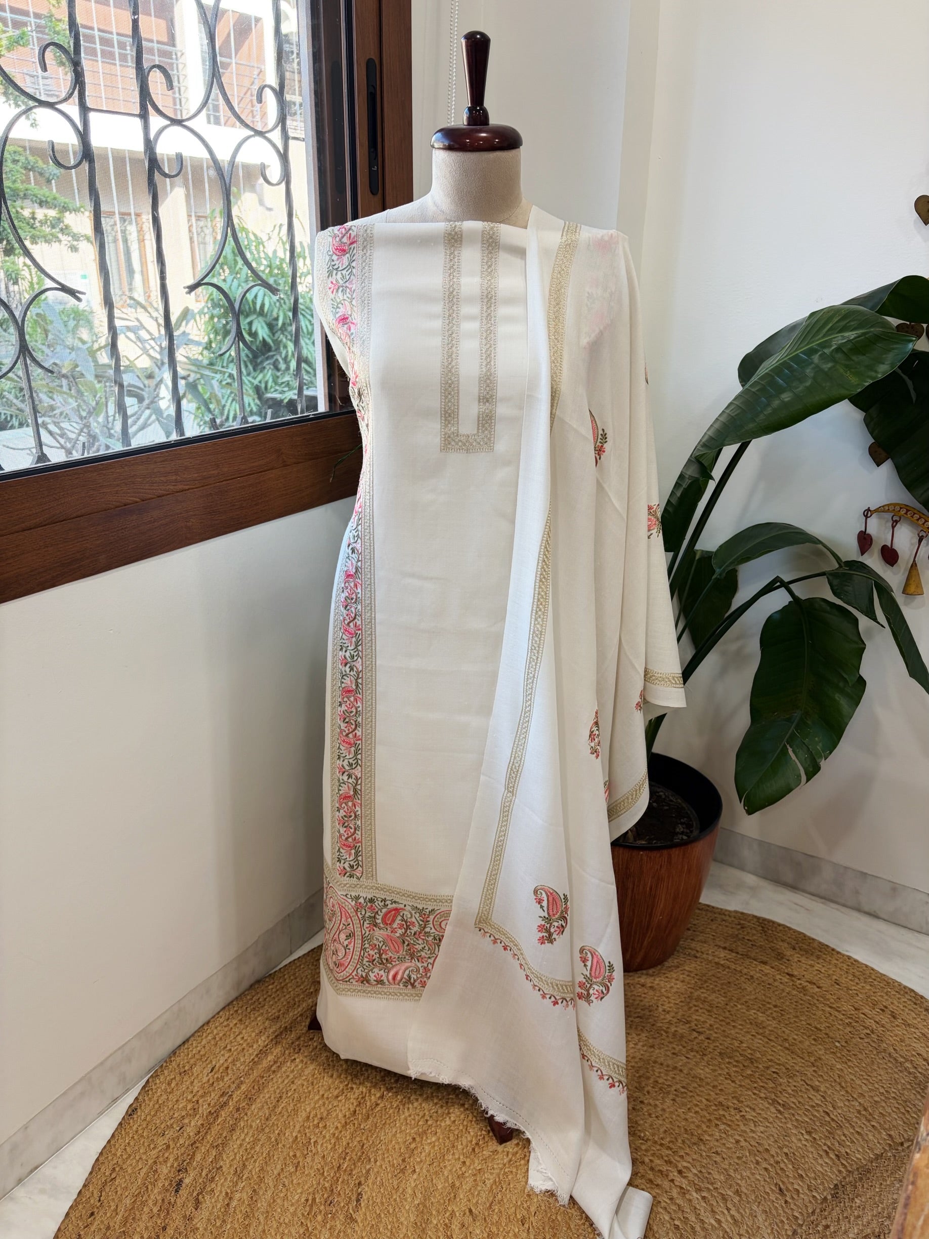 Ivory Winter Suit Set with Aari Work in Pashmina Wool