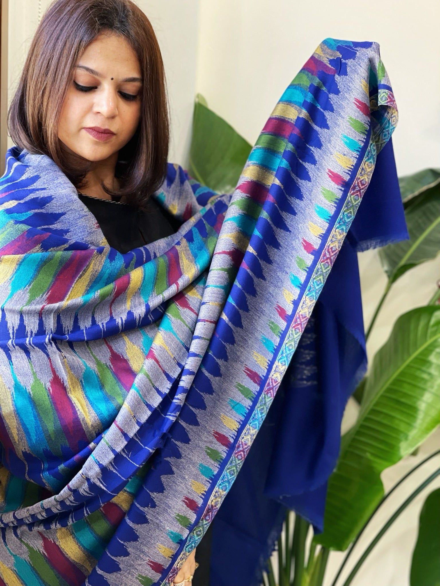 Electric Blue Woven Ikat Pashmina Shawl