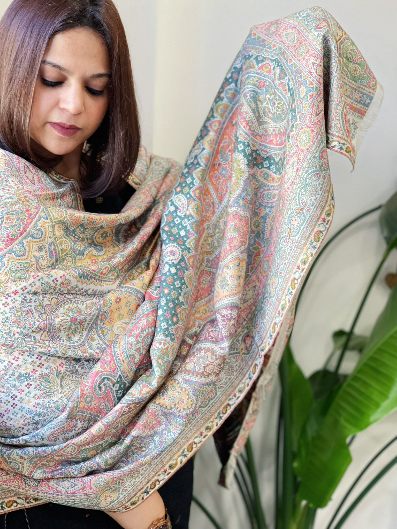 Note: Product colour may vary slightly due to photographic lighting sources or your screen/monitor setting. Woven Kaani design has cut threas on the back, which shed during initial and then stabalize over time.
