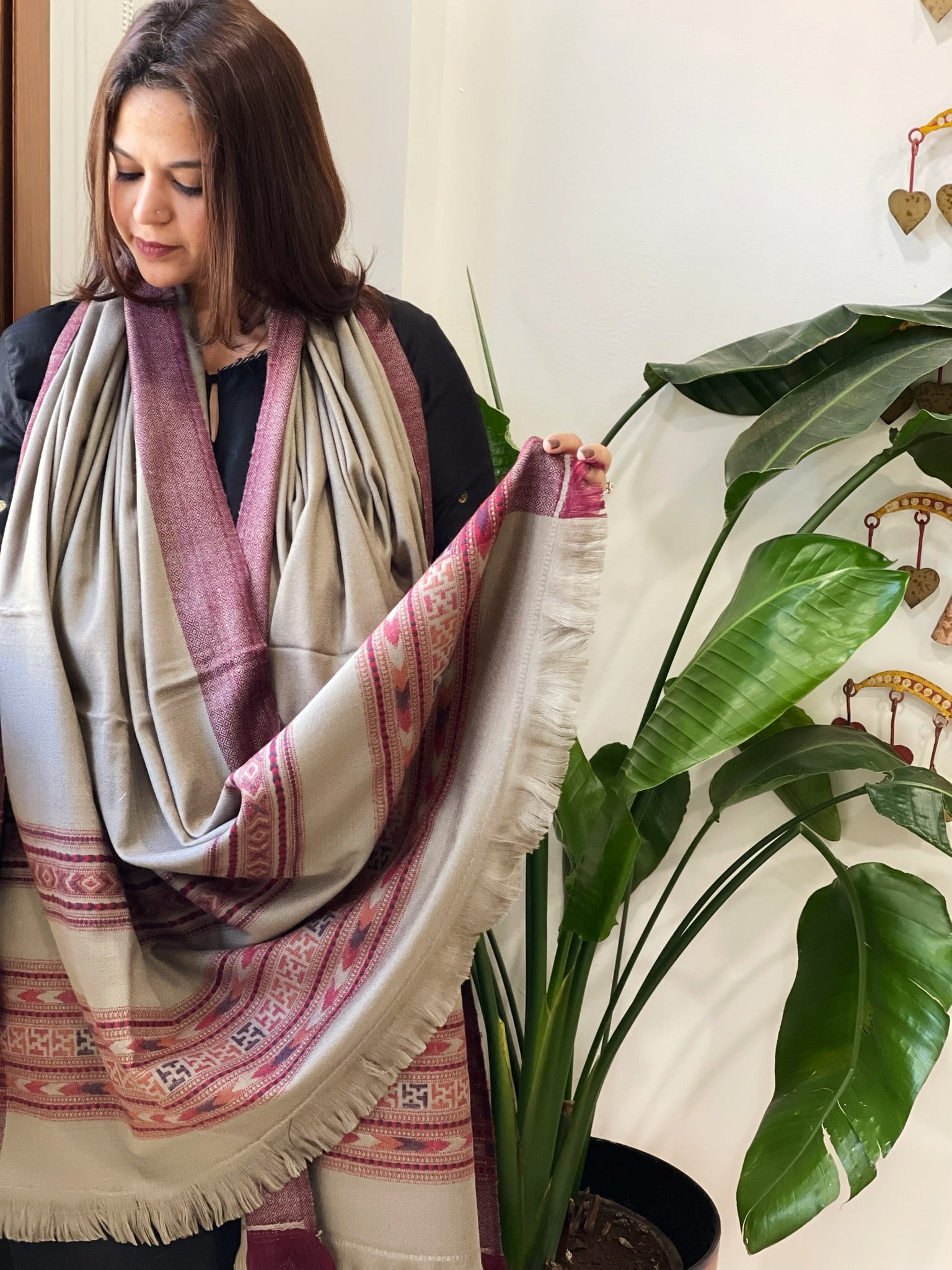 Expertly crafted wool, this woven shawl is the perfect accessory to make a winter statement. Its luxurious material offers both warmth and style, making it a must-have for any wardrobe.
