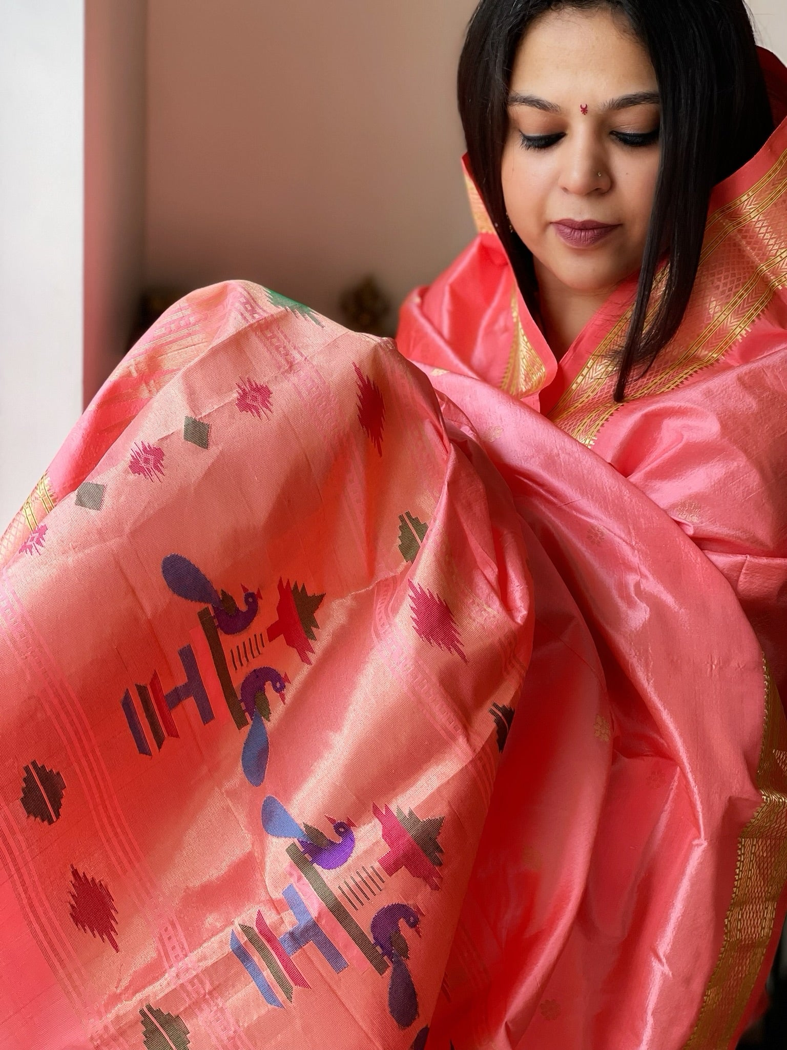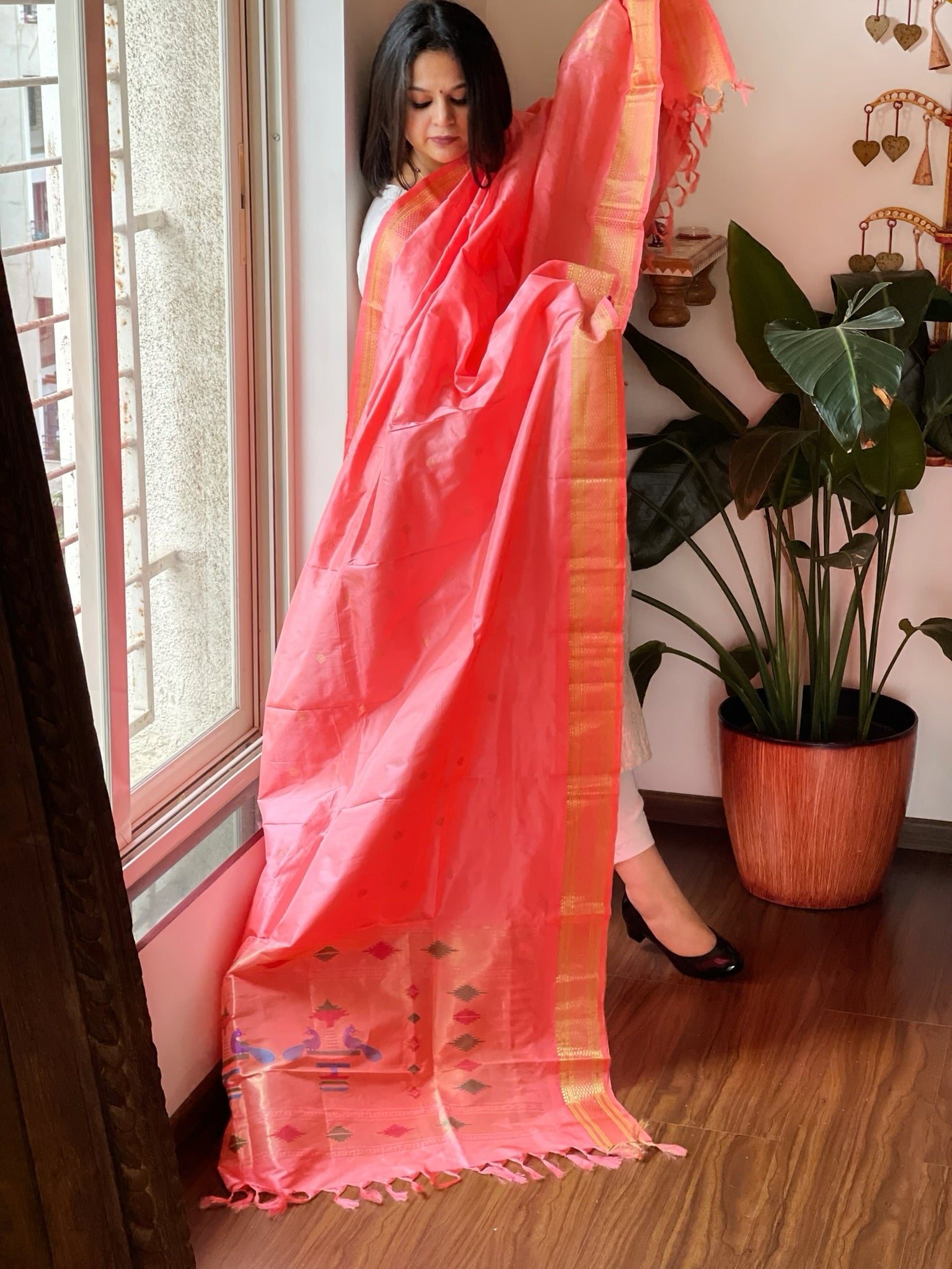 Expertly crafted in pure silk, our Woven Paithani Dupatta is the perfect addition to your festive wardrobe. Vibrant and gorgeous, it will add a touch of elegance and sophistication to any outfit.