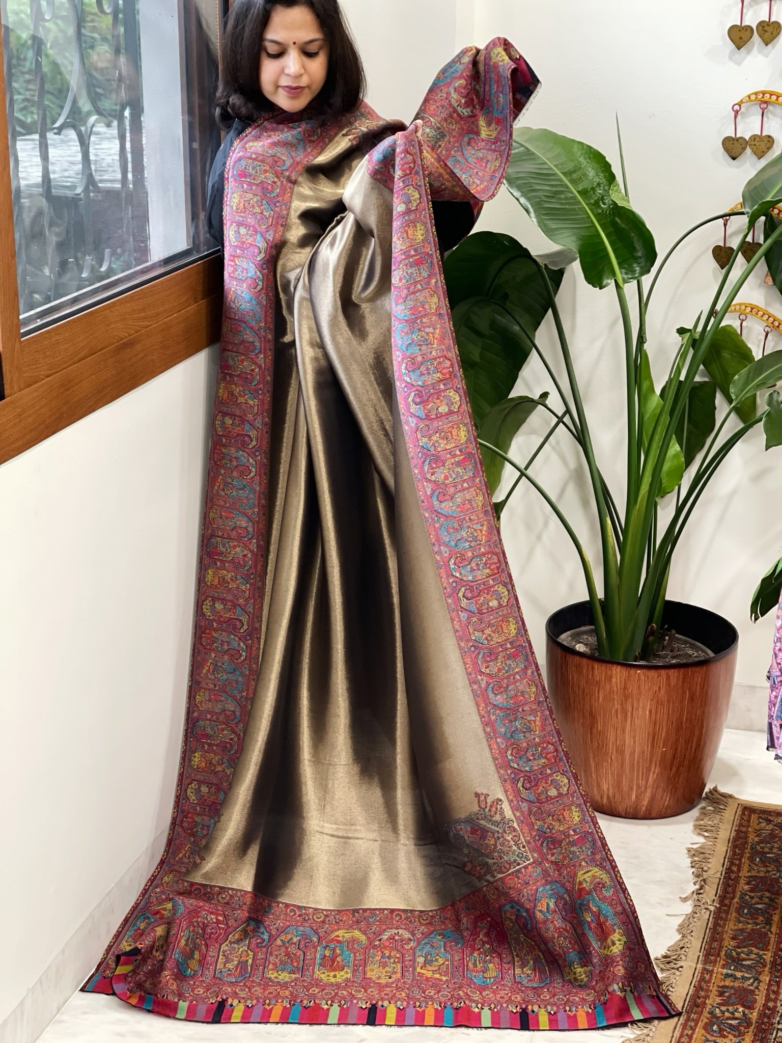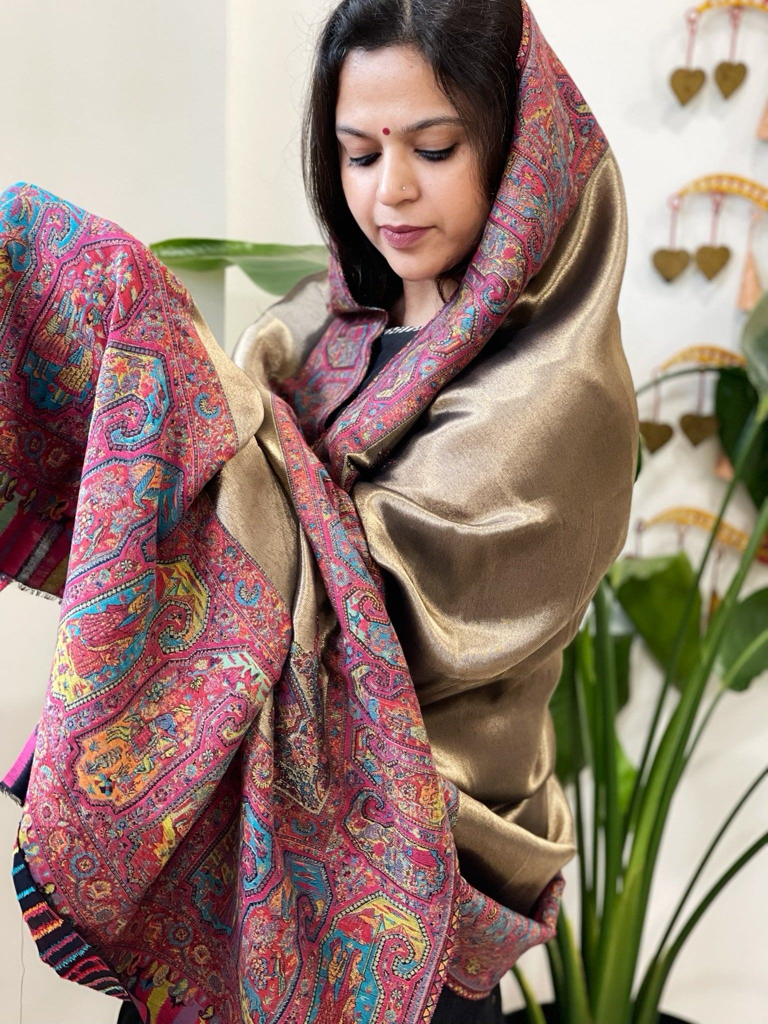 Elevate your wardrobe with our Woven Pure Silk Kaani Dupatta. This dupatta is made from luxurious pure silk and features intricate weaving for a unique and elegant look. Perfect for adding a touch of sophistication to any outfit.