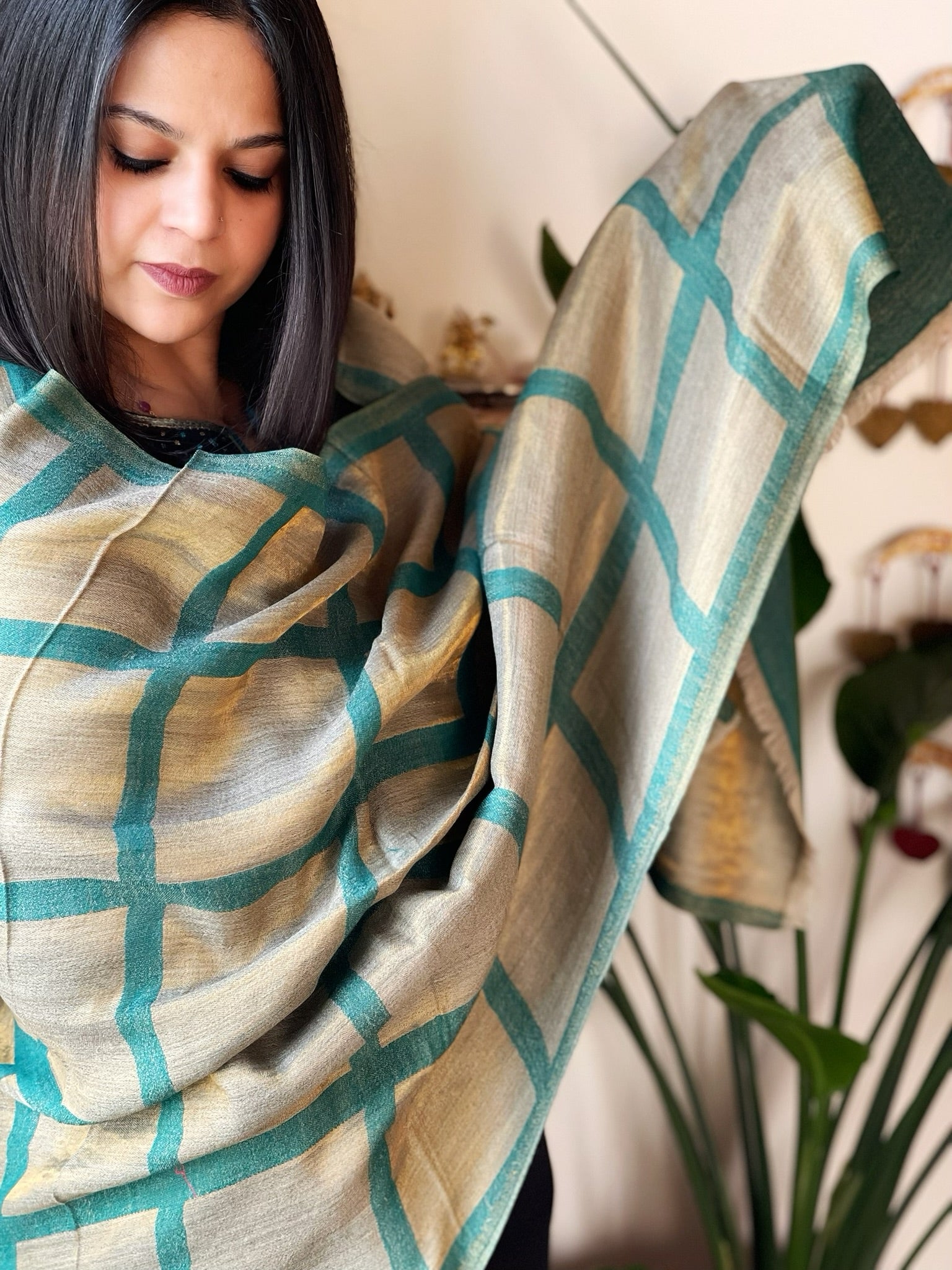 Experience a luxurious blend of warmth and style with our gorgeous Woven Zari Pashmina Check Design Stole. Made from pure wool, these stoles are not only warm and cosy, but also lightweight and perfect for winter weather. Elevate your winter outfits with the intricate zari detailing.