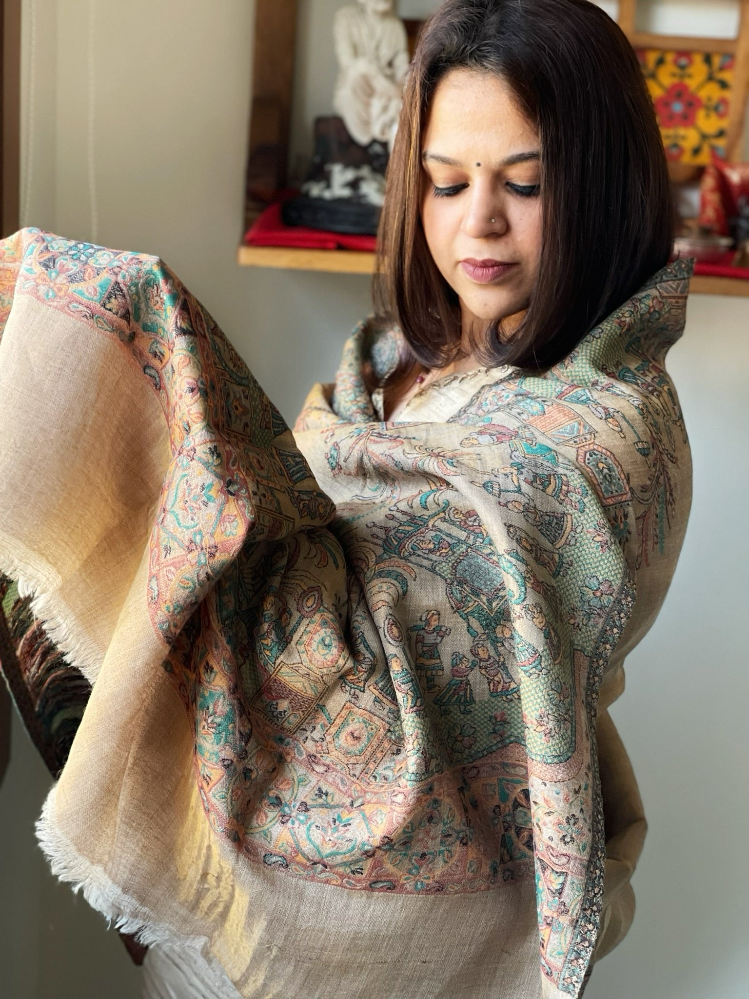 Experience a luxurious blend of warmth and style with our gorgeous Pashmina Shawl with Zari and Kaani Border and Kaani Pallu. Made from pure wool, these stoles are not only warm and cosy, but also lightweight and perfect for winter weather. Elevate your winter outfits with the intricate zari detailing.